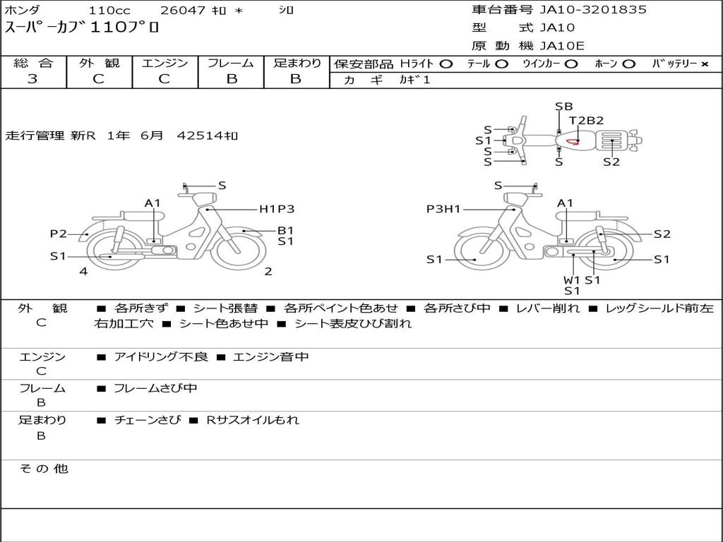 | Номер рамы / VIN | JA10-3201835 |