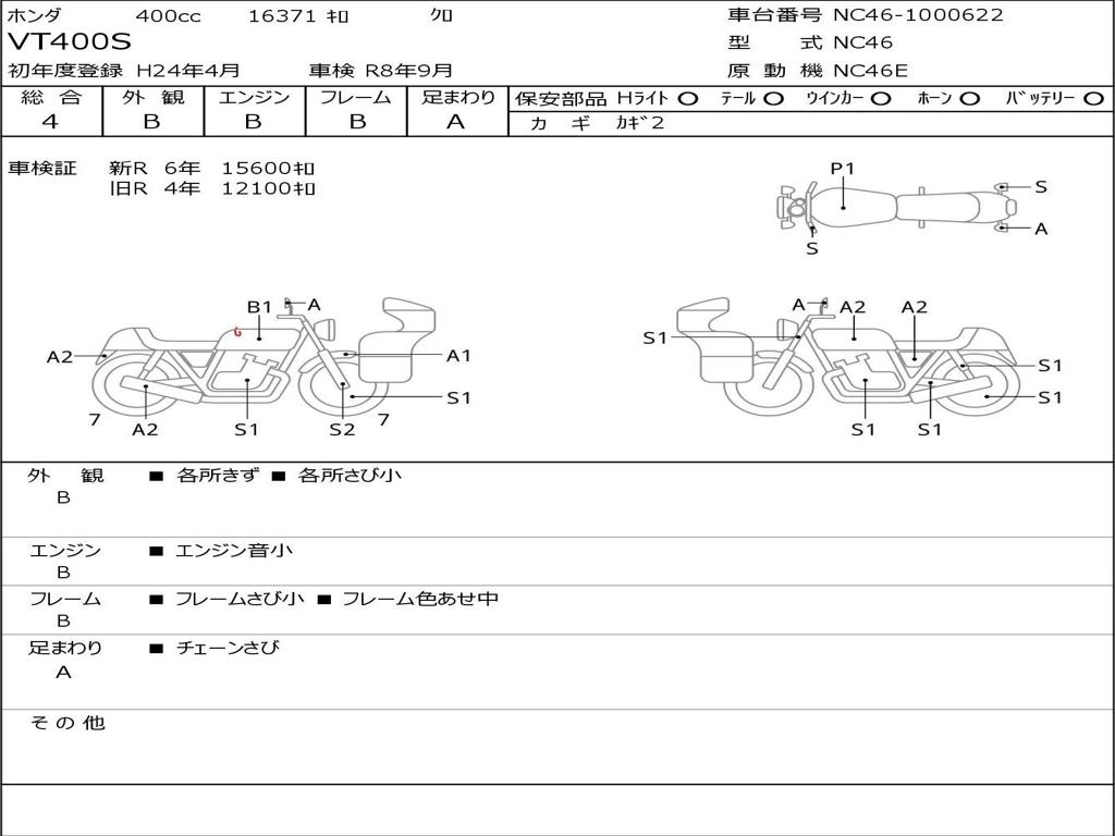 | Номер рамы / VIN | NC46-1000622 |