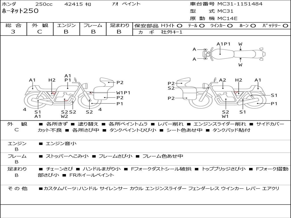 | Номер рамы / VIN | MC31-1151484 |