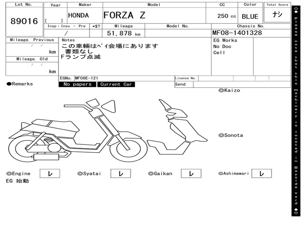 | Номер рамы / VIN | MF08-1401328 |