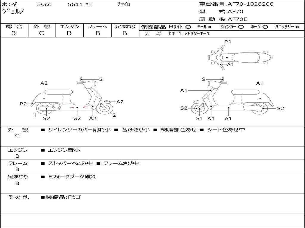 | Номер рамы / VIN | AF70-1026206 |