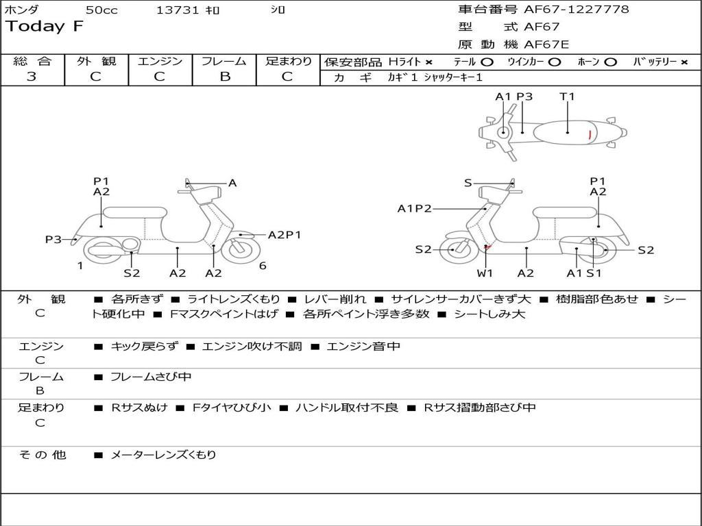 | Номер рамы / VIN | AF67-1227778 |