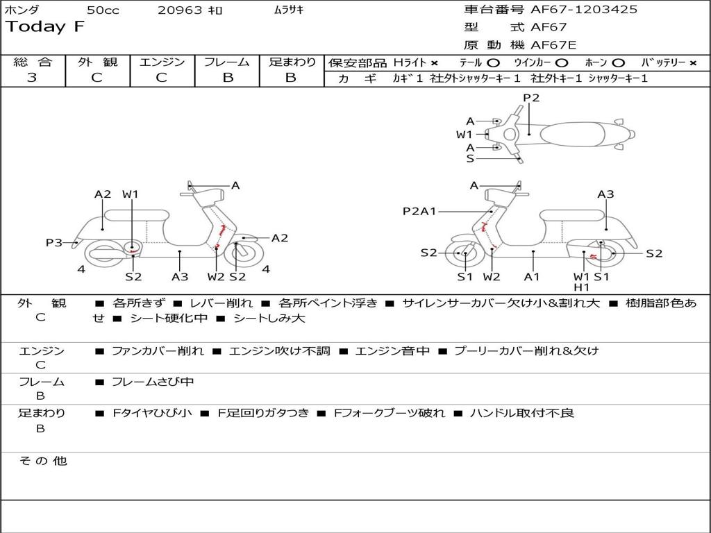 | Номер рамы / VIN | AF67-1203425 |
