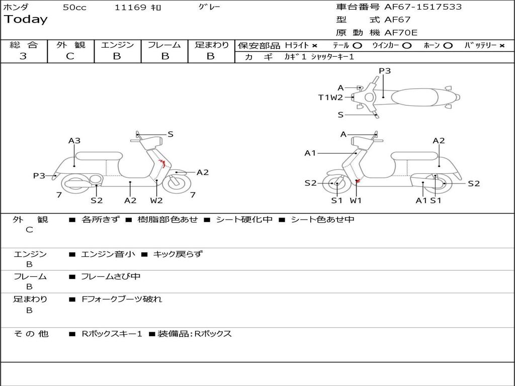 | Номер рамы / VIN | AF67-1517533 |