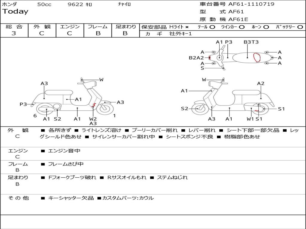 | Номер рамы / VIN | AF61-1110719 |