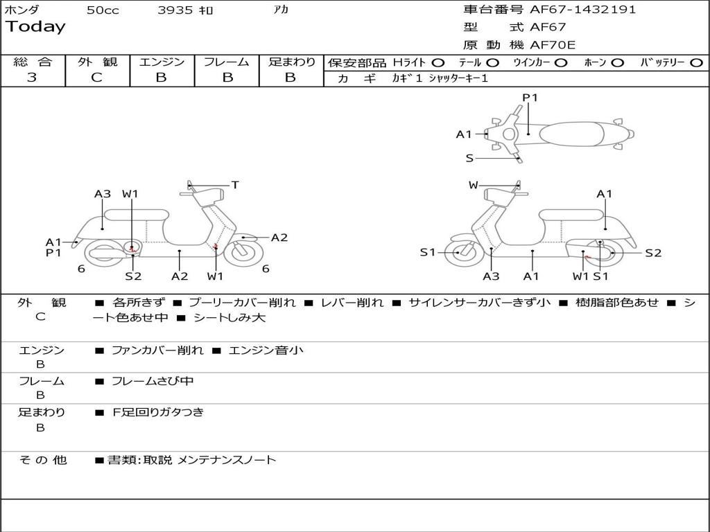 | Номер рамы / VIN | AF67-1432191 |