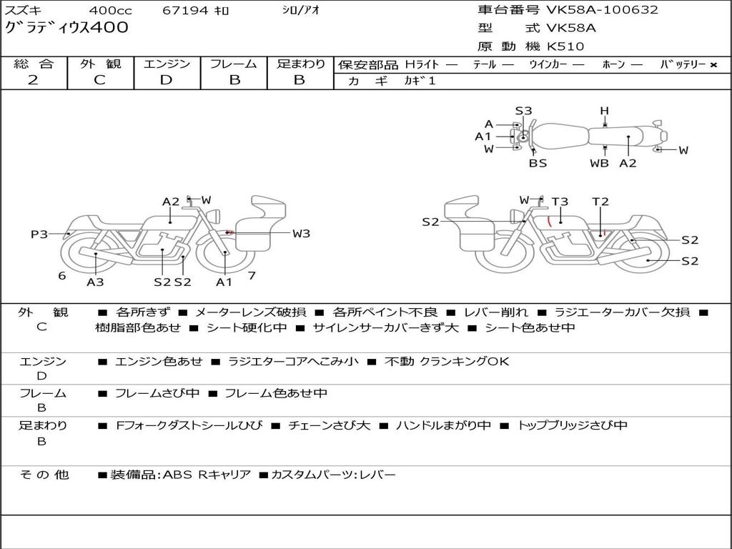 | Номер рамы / VIN | VK58A-100632 |