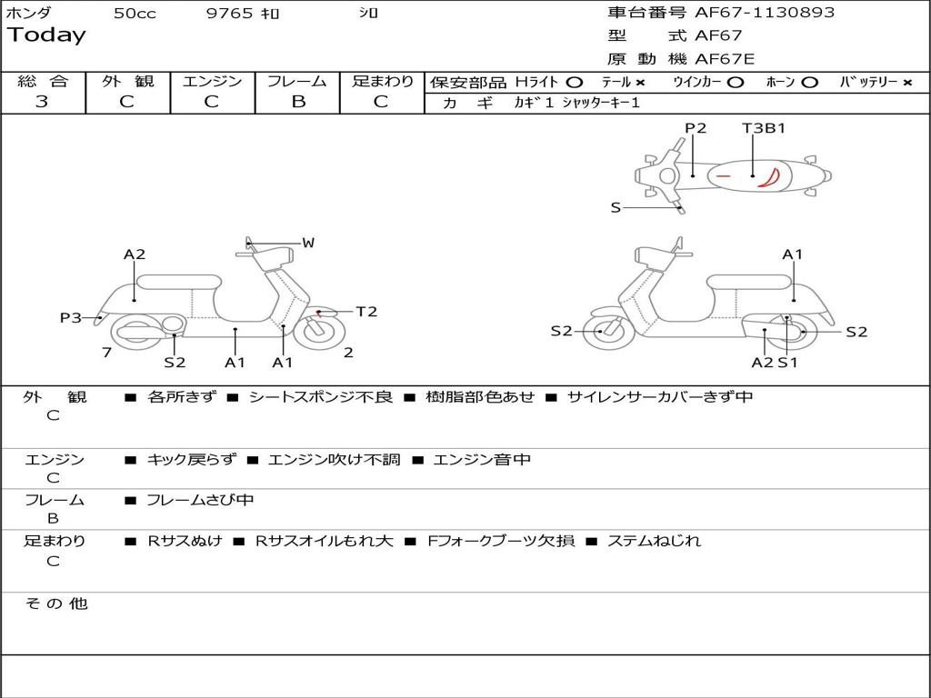 | Номер рамы / VIN | AF67-1130893 |