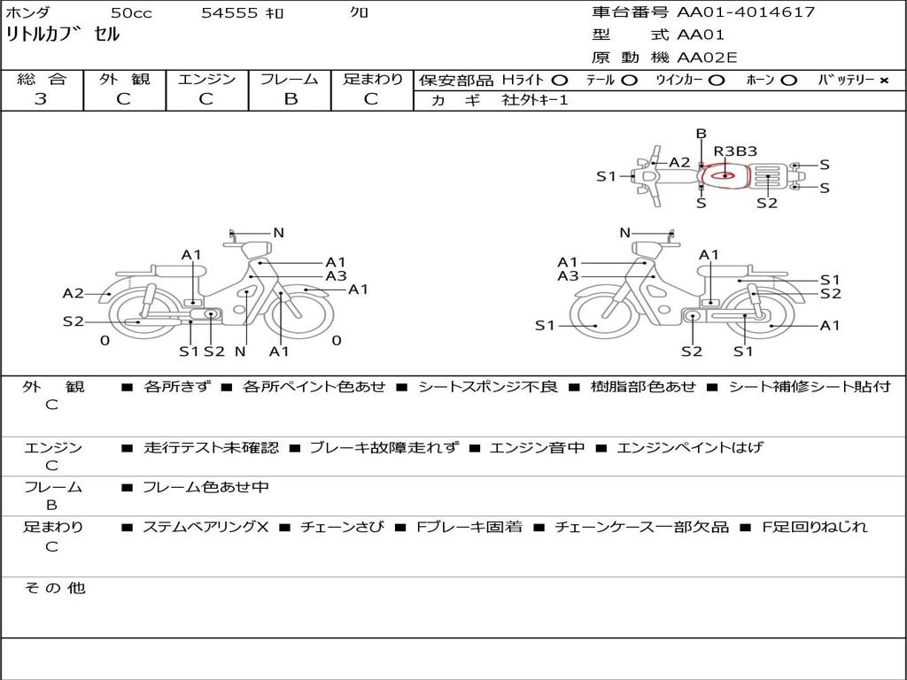 | Номер рамы / VIN | AA01-4014617 |