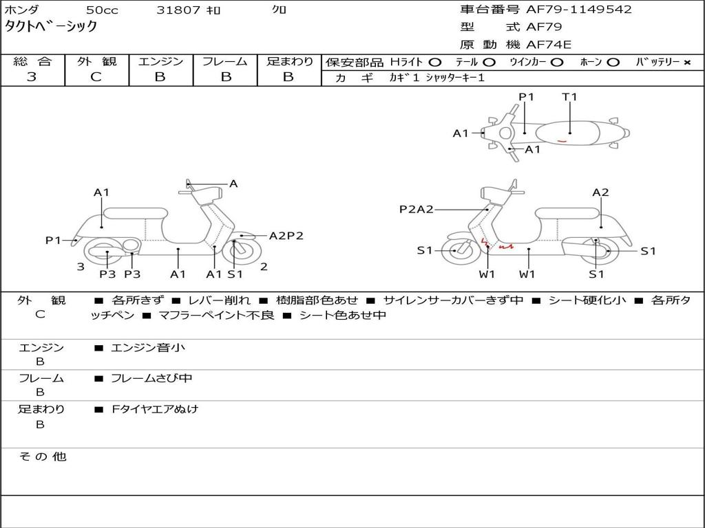 | Номер рамы / VIN | AF79-1149542 |