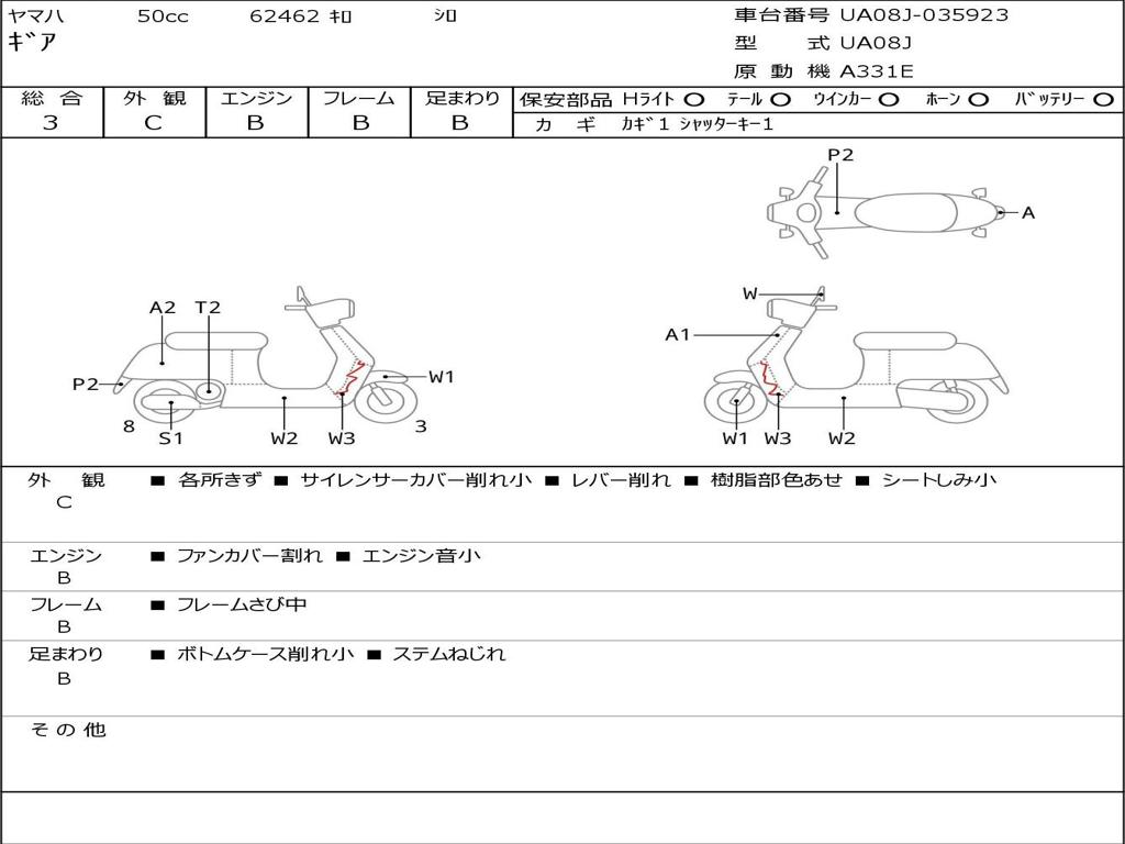 | Номер рамы / VIN | UA08J-035923 |
