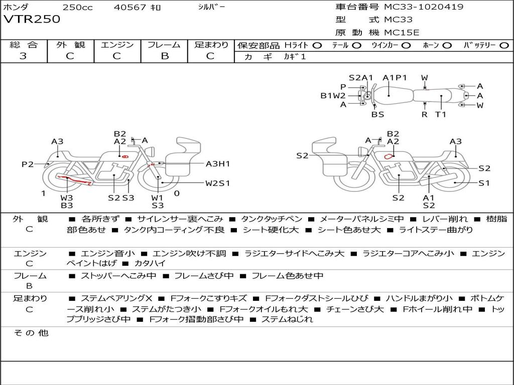 | Номер рамы / VIN | MC33-1020419 |