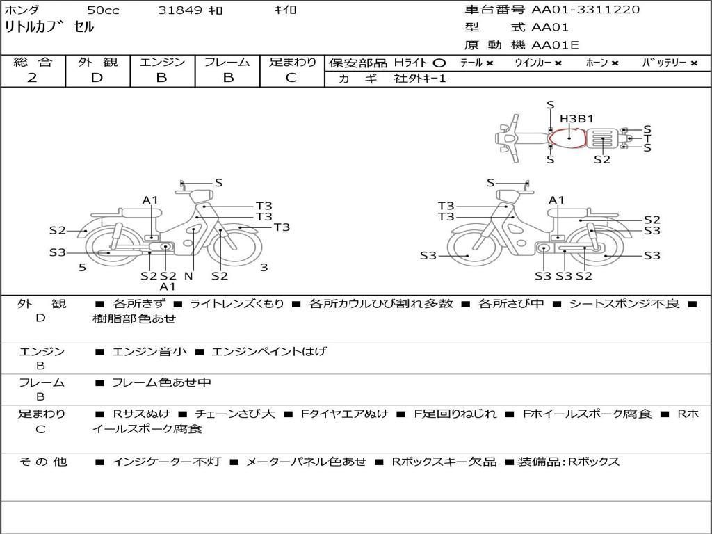 | Номер рамы / VIN | AA01-3311220 |