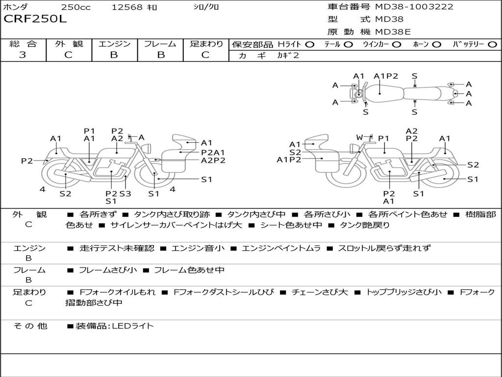 | Номер рамы / VIN | MD38-1003222 |