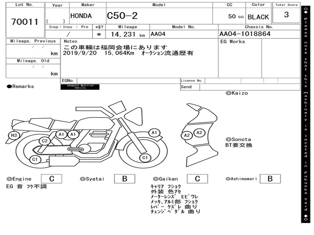 | Номер рамы / VIN | AA04-1018864 |