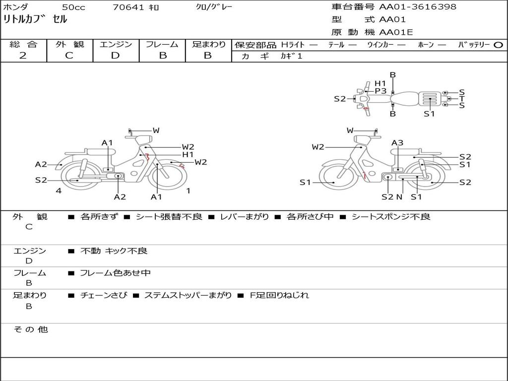 | Номер рамы / VIN | AA01-3616398 |