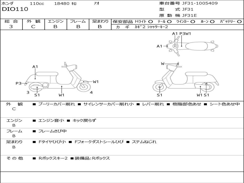 | Номер рамы / VIN | JF31-1005409 |