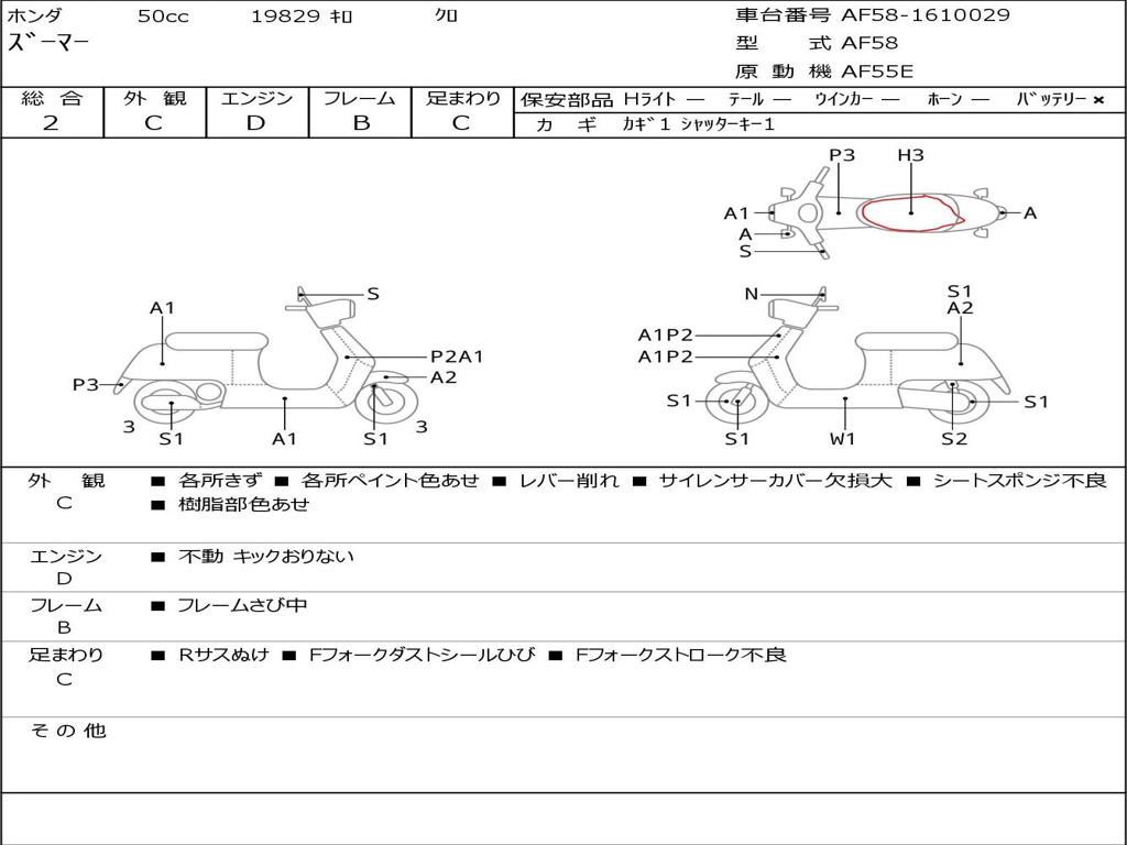 | Номер рамы / VIN | AF58-1610029 |