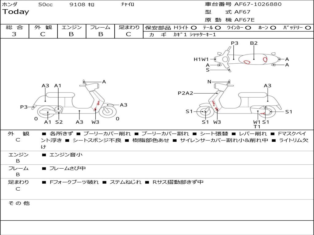 | Номер рамы / VIN | AF67-1026880 |