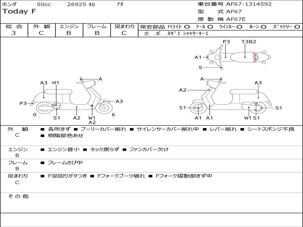 | Номер рамы / VIN | AF67-1314592 |