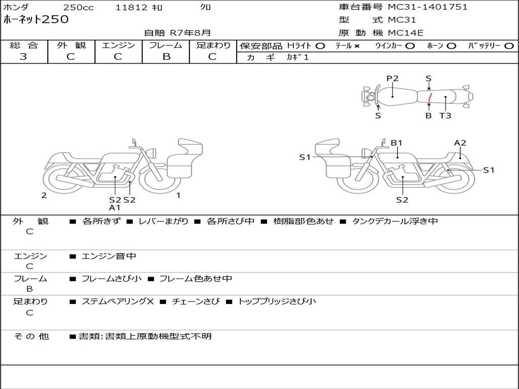 | Номер рамы / VIN | MC31-1401751 |