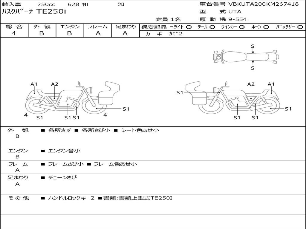 | Номер рамы / VIN | VBKUTA200KM267418 |