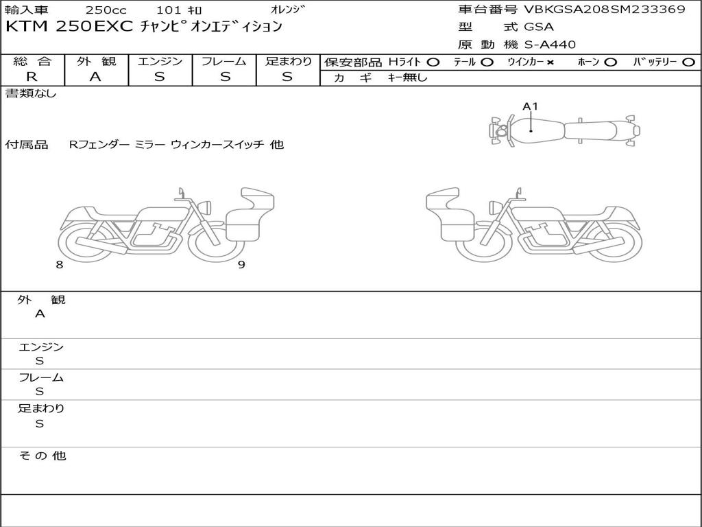 | Номер рамы / VIN | VBKGSA208SM233369 |