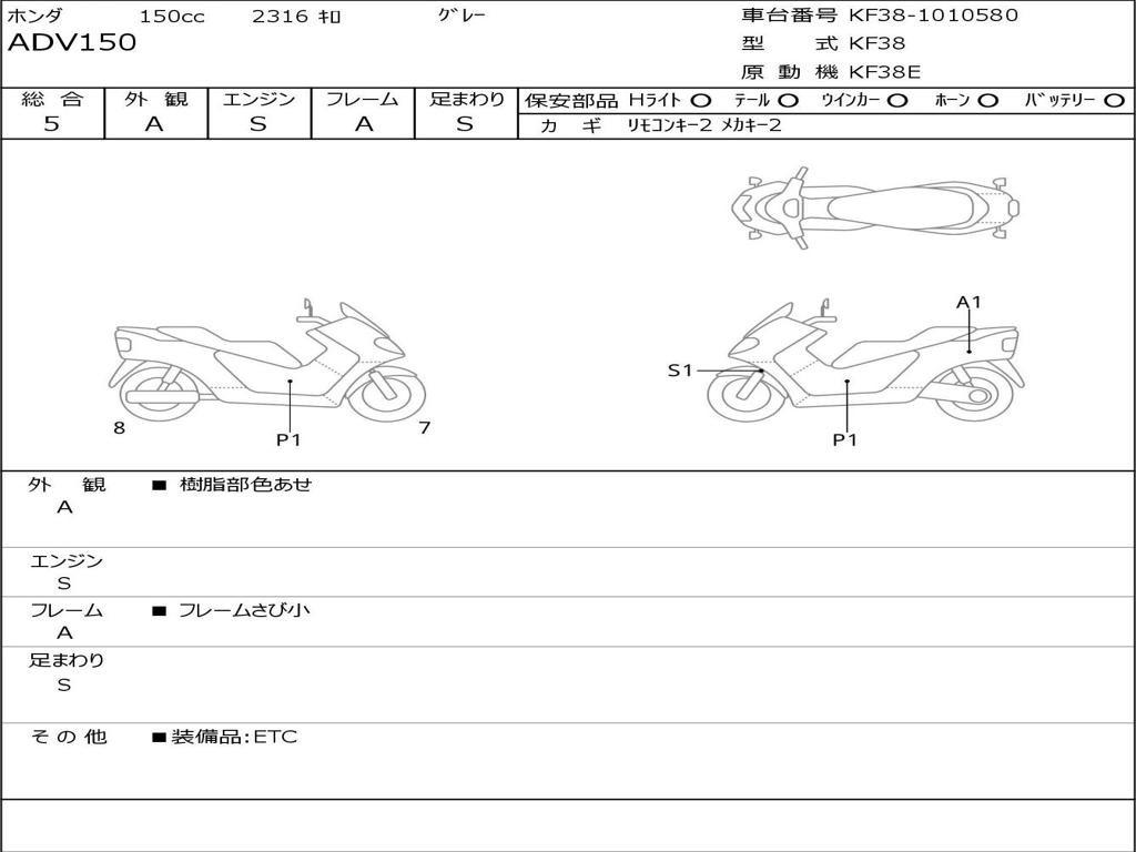 | Номер рамы / VIN | KF38-1010580 |