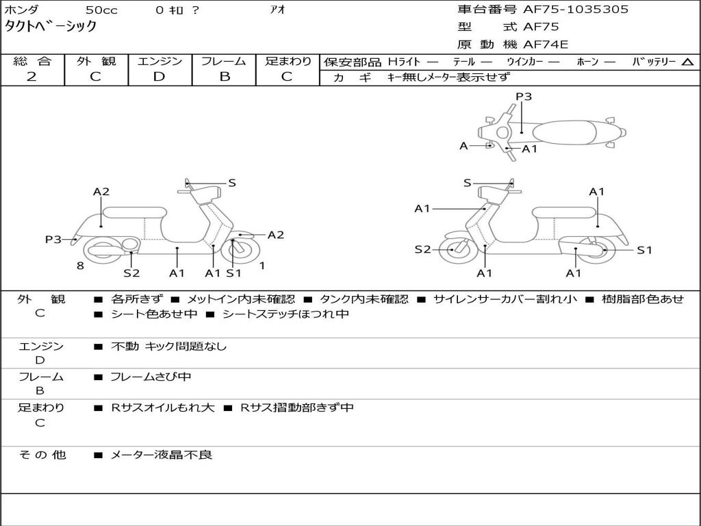 | Номер рамы / VIN | AF75-1035305 |