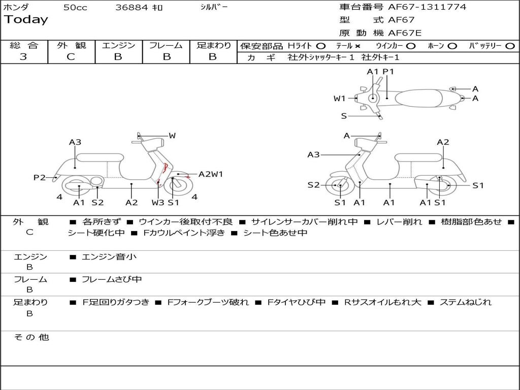 | Номер рамы / VIN | AF67-1311774 |