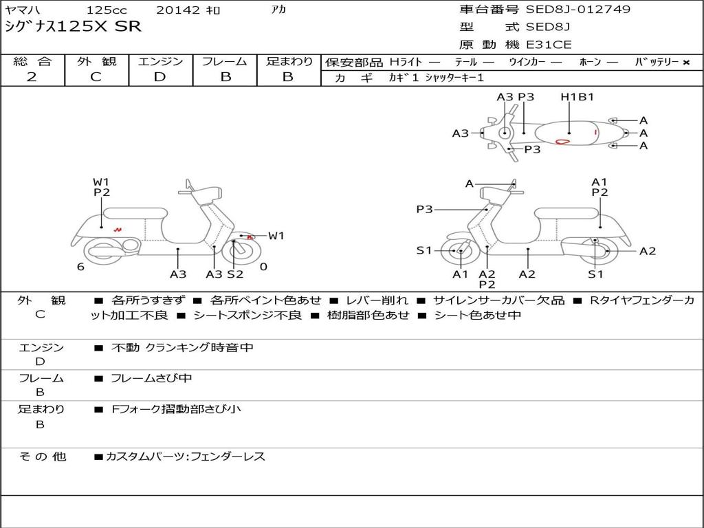 | Номер рамы / VIN | SED8J-012749 |