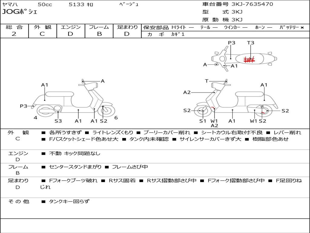 | Номер рамы / VIN | 3KJ-7635470 |