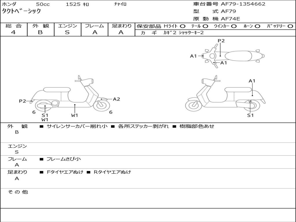 | Номер рамы / VIN | AF79-1354662 |