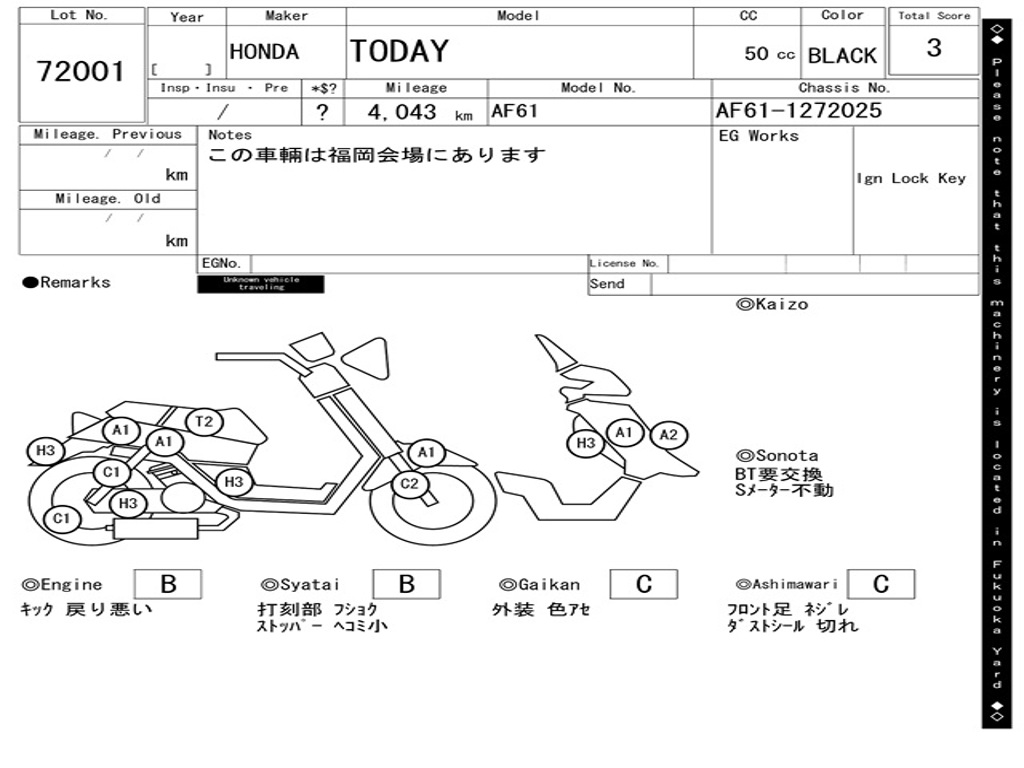| Номер рамы / VIN | AF61-1272025 |