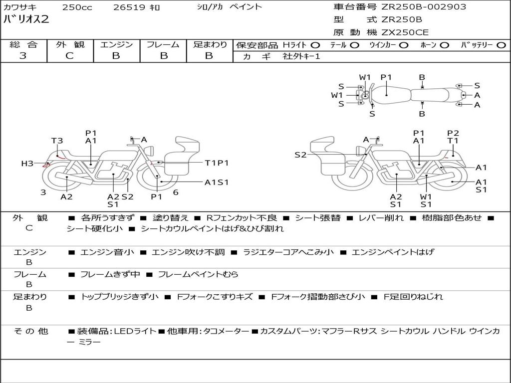| Номер рамы / VIN | ZR250B-002903 |