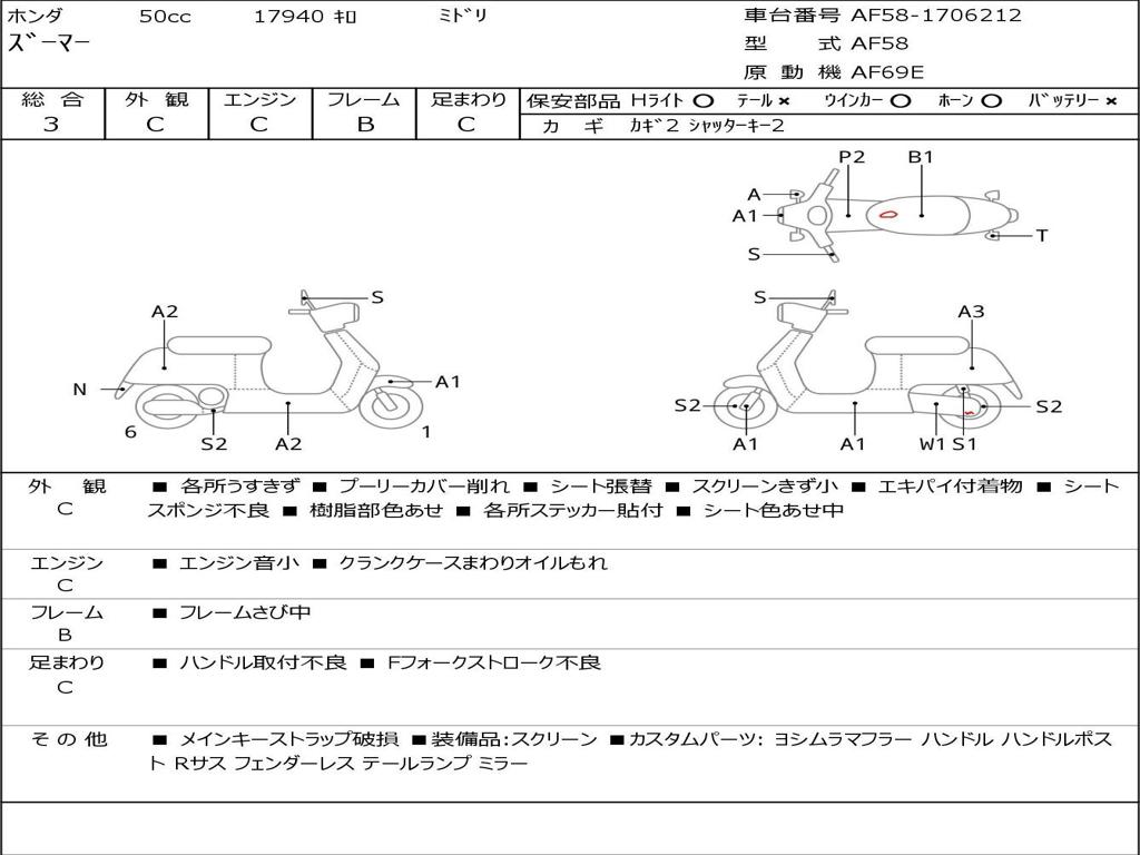 | Номер рамы / VIN | AF58-1706212 |