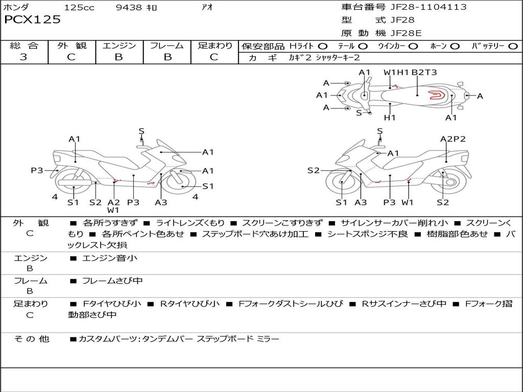 | Номер рамы / VIN | JF28-1104113 |