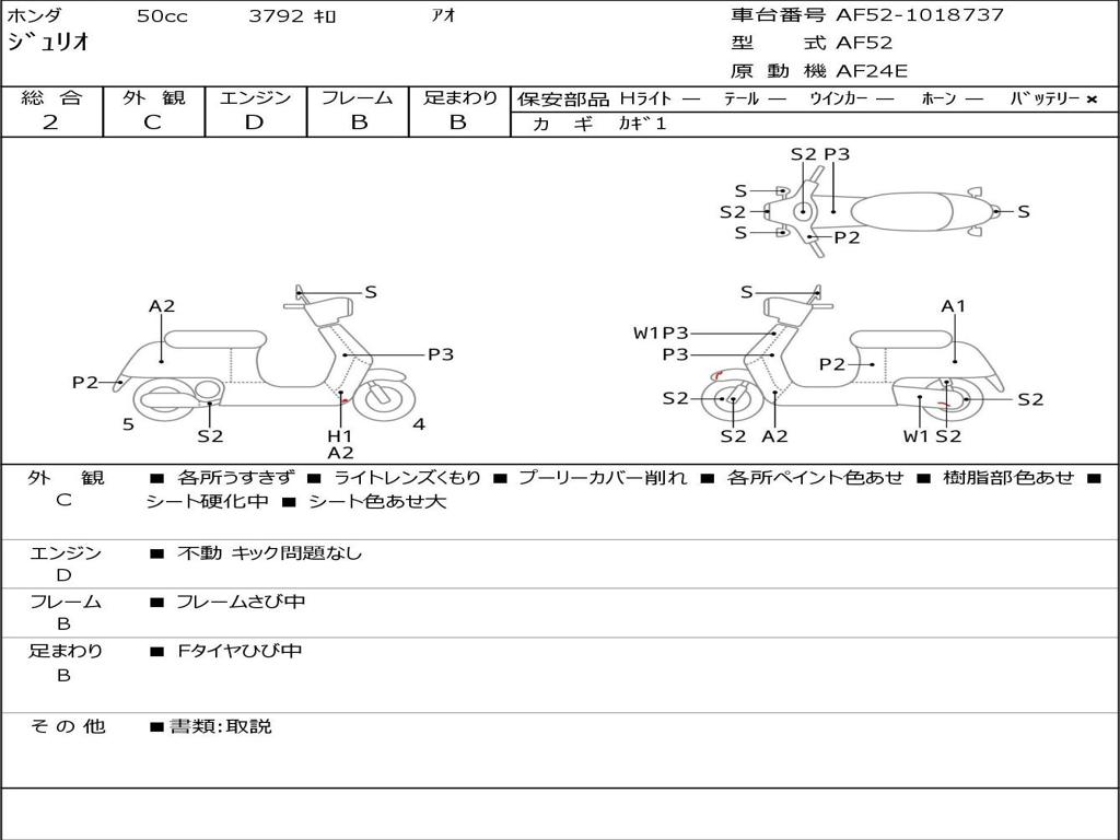 | Номер рамы / VIN | AF52-1018737 |