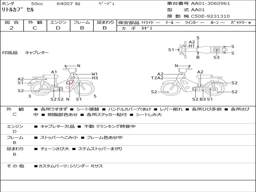 | Номер рамы / VIN | AA01-3060961 |