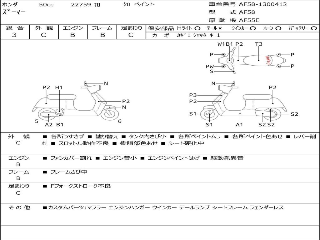 | Номер рамы / VIN | AF58-1300412 |
