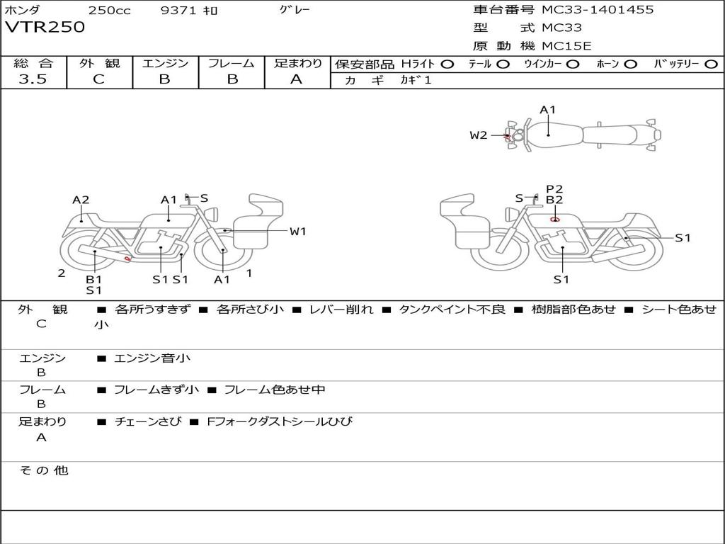 | Номер рамы / VIN | MC33-1401455 |