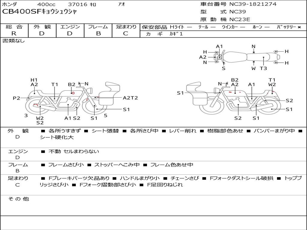 | Номер рамы / VIN | NC39-1821274 |
