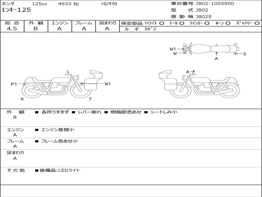 | Номер рамы / VIN | JB02-1005900 |