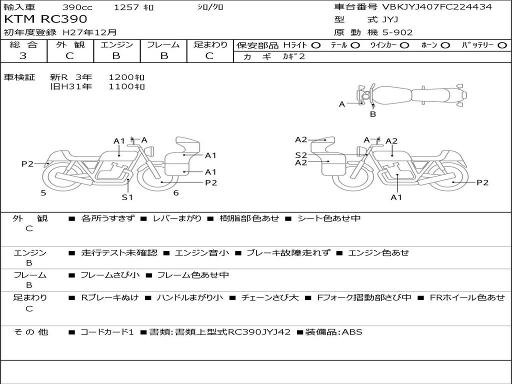 | Номер рамы / VIN | VBKJYJ407FC224434 |