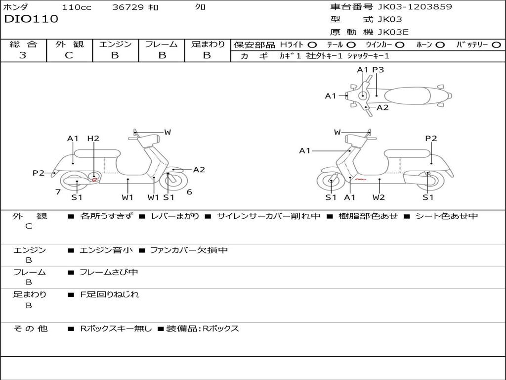 | Номер рамы / VIN | JK03-1203859 |