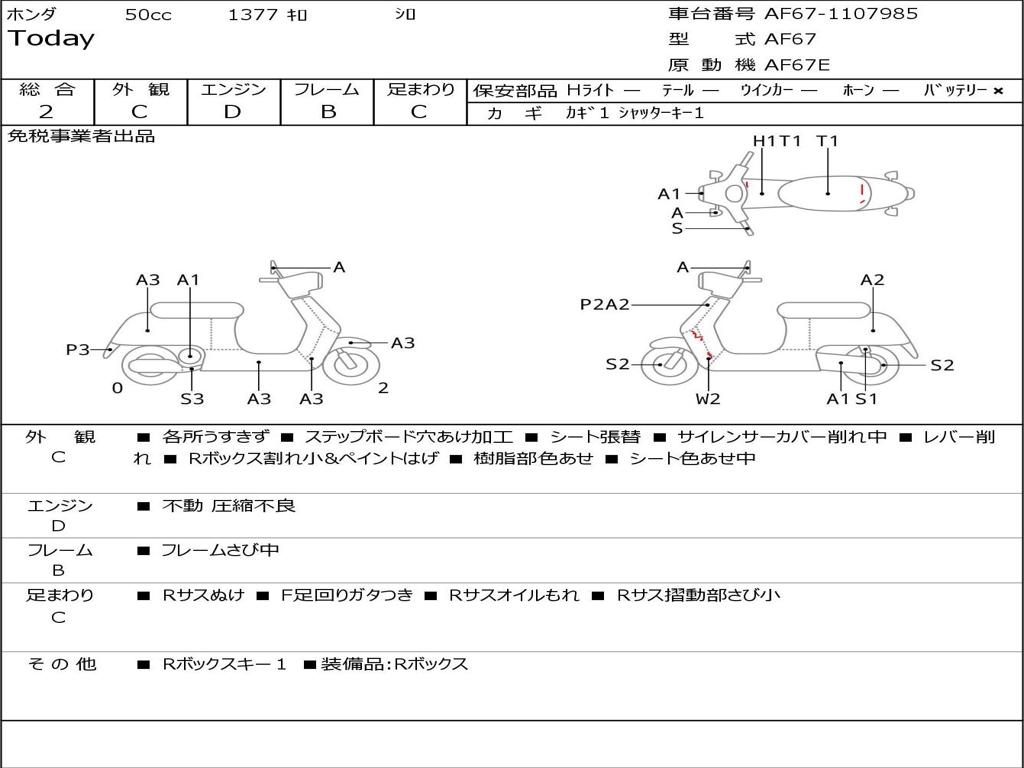 | Номер рамы / VIN | AF67-1107985 |