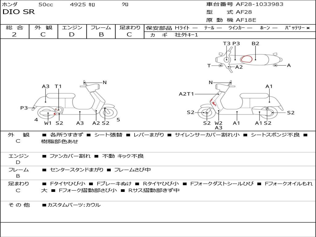 | Номер рамы / VIN | AF28-1033983 |