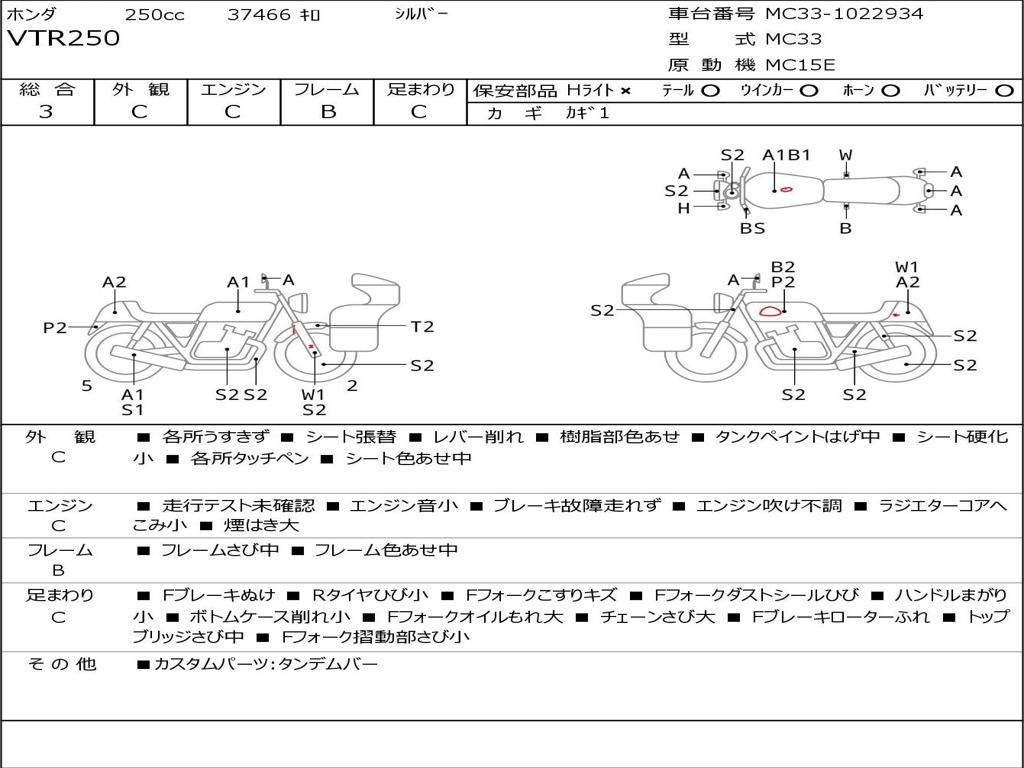 | Номер рамы / VIN | MC33-1022934 |
