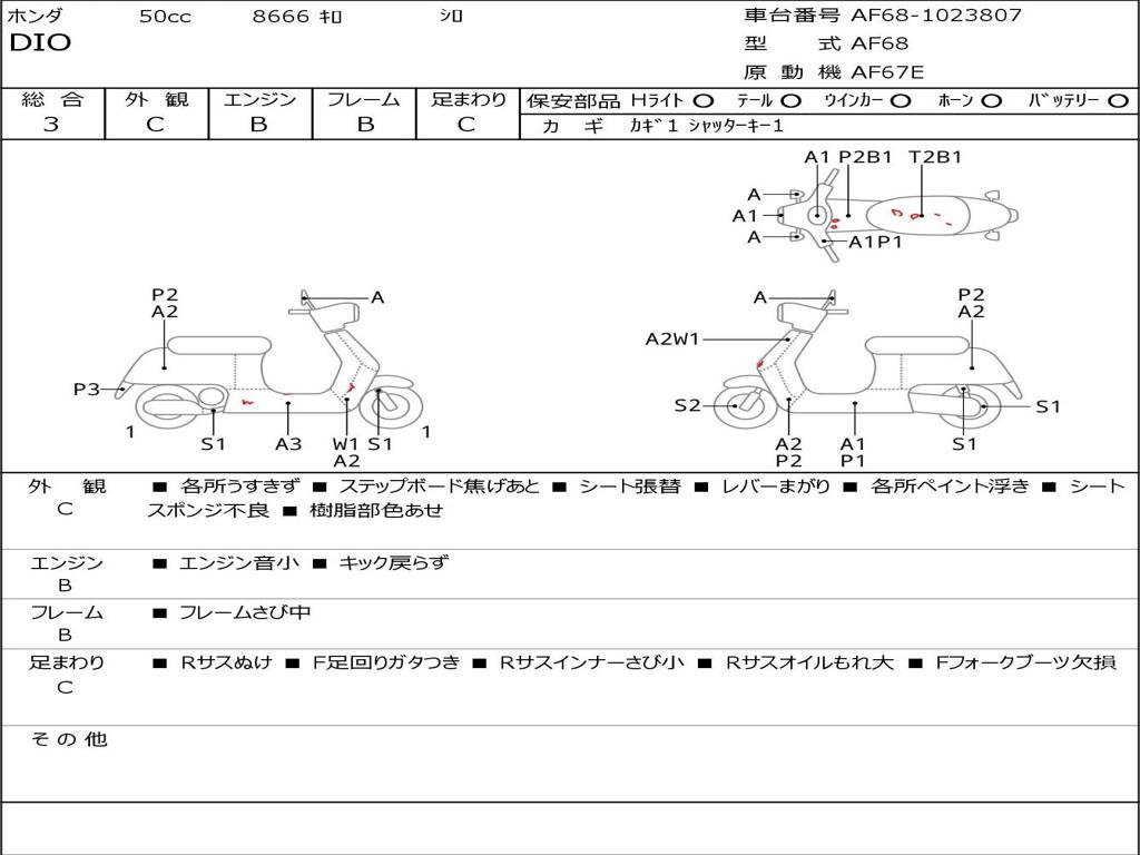 | Номер рамы / VIN | AF68-1023807 |