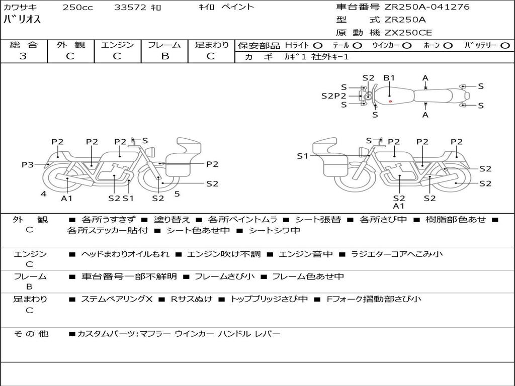 | Номер рамы / VIN | ZR250A-041276 |
